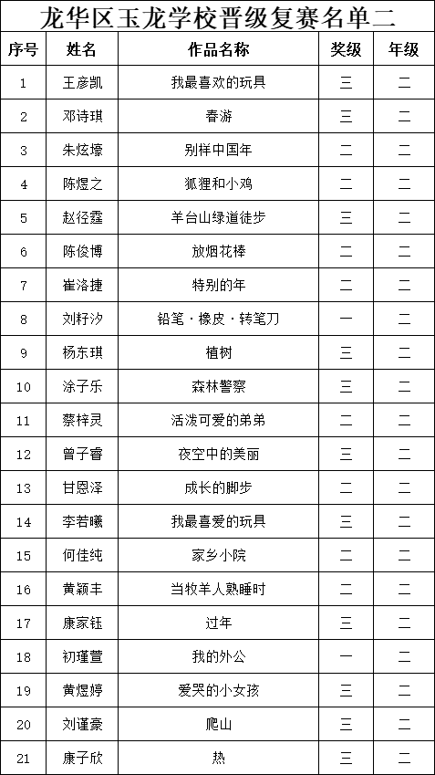 自2021年1月,活動征稿啟動以來,獲得了深圳市廣大中小學生、教師、文學愛好者的熱烈響應積極參與,吸引了深圳百余所學校的上萬人關注報名?,F(xiàn)公布龍華區(qū)玉龍學校專場第二批晉級復賽名單如下: