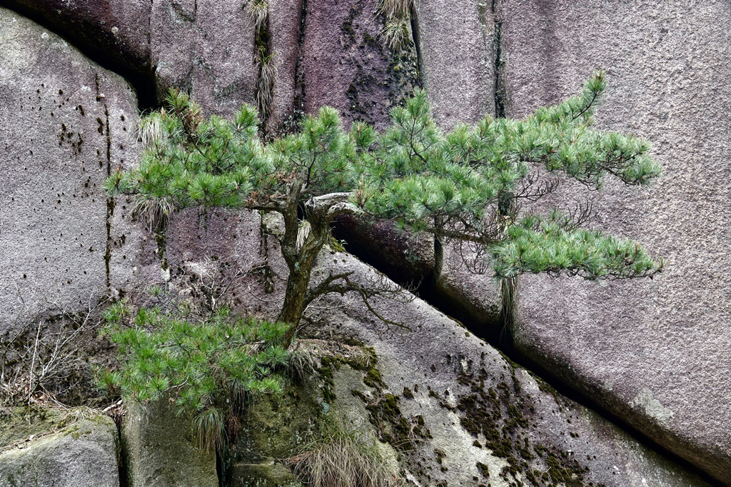 生長(zhǎng)在巖石峭壁縫隙的松樹(shù),枝干蒼勁,郁郁蔥蔥。李仁奇 攝