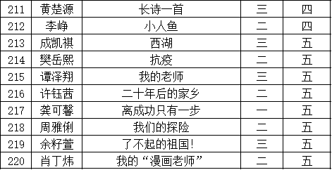 自2021年1月,活動(dòng)征稿啟動(dòng)以來(lái),獲得了深圳市廣大中小學(xué)生、教師、文學(xué)愛(ài)好者的熱烈響應(yīng)積極參與,吸引了深圳百余所學(xué)校的上萬(wàn)人關(guān)注報(bào)名?,F(xiàn)公布福田區(qū)華新小學(xué)晉級(jí)復(fù)賽名單如下: