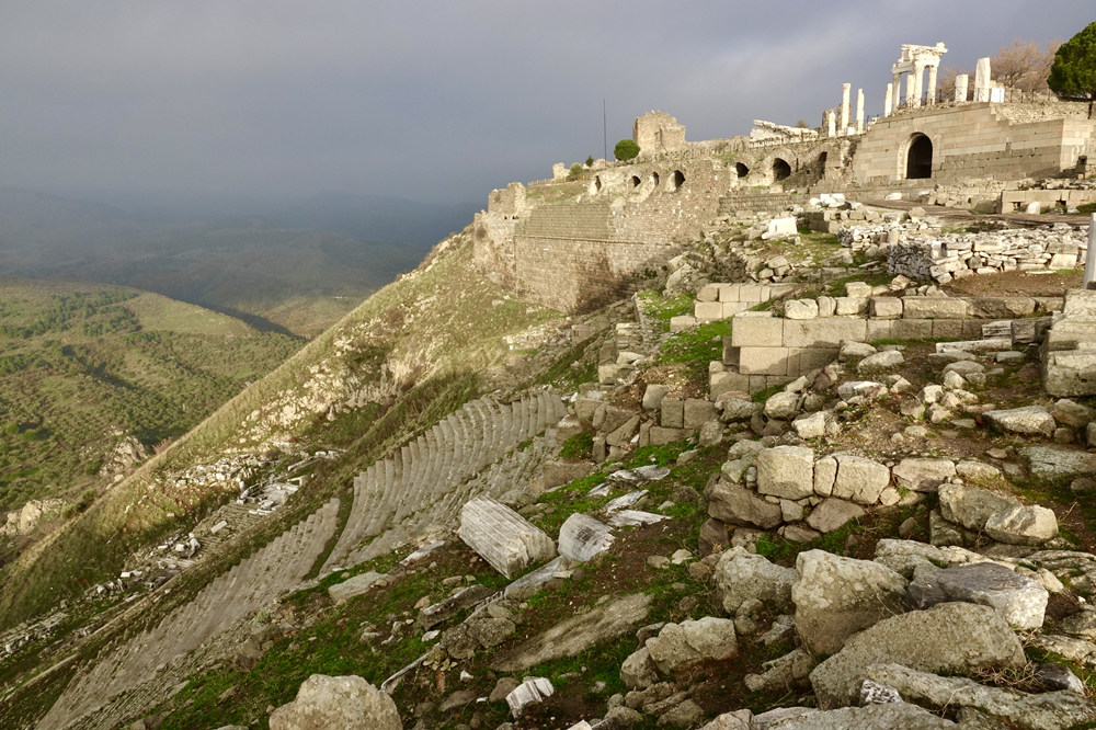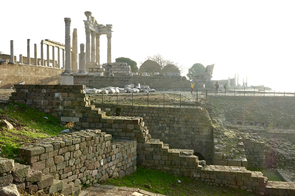 羅馬帝國時(shí),城市遷到山下的平原。山頂和山坡高處的古跡包括一座劇場、雅典娜神廟以及宙斯大祭壇。李仁奇 攝