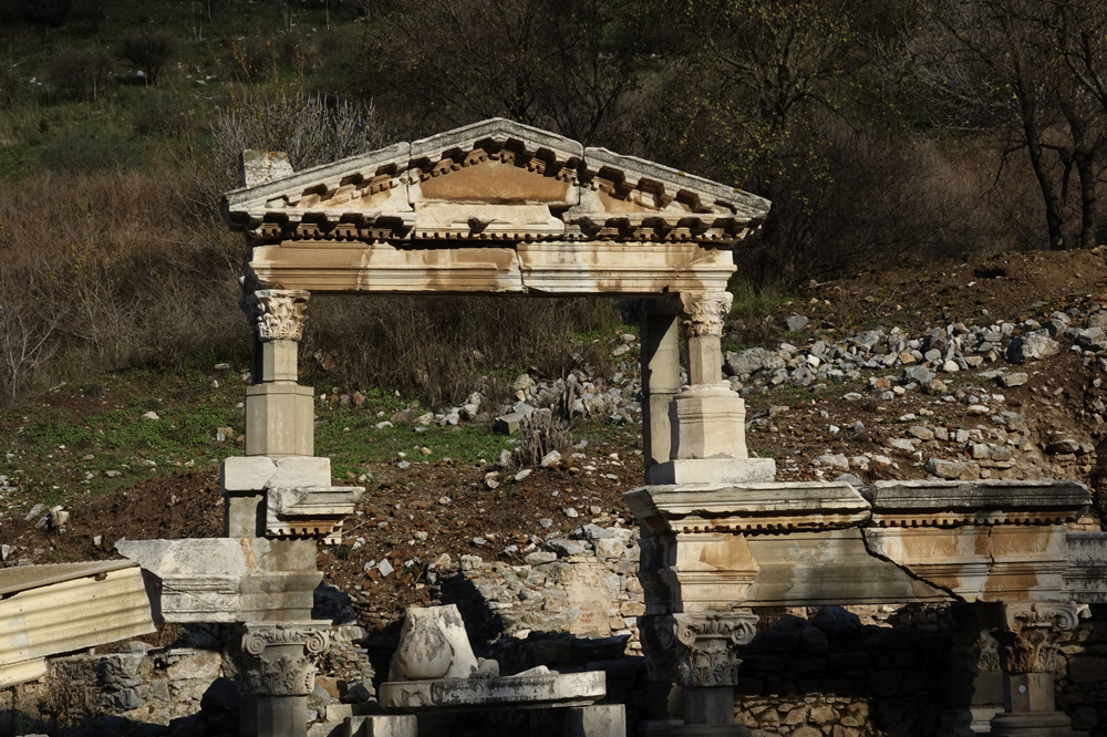 挨著哈德良神廟的圖拉真噴泉,建于公元104年,是為圖拉真皇帝的榮譽而建。四周有立柱和雕像。雕像是希臘諸神的狄俄尼索斯(酒神)、薩梯(森林之神)、阿芙羅狄蒂(愛與美之女神)和皇室成員。李仁奇 攝