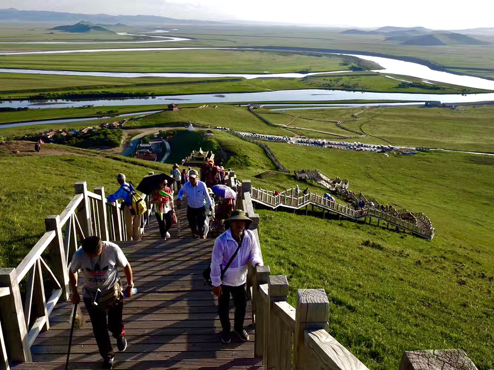 沿著木棧道拾級(jí)而上,山下的河道隨著視覺(jué)的開(kāi)闊而愈顯豐盈靈動(dòng)。李仁奇 攝