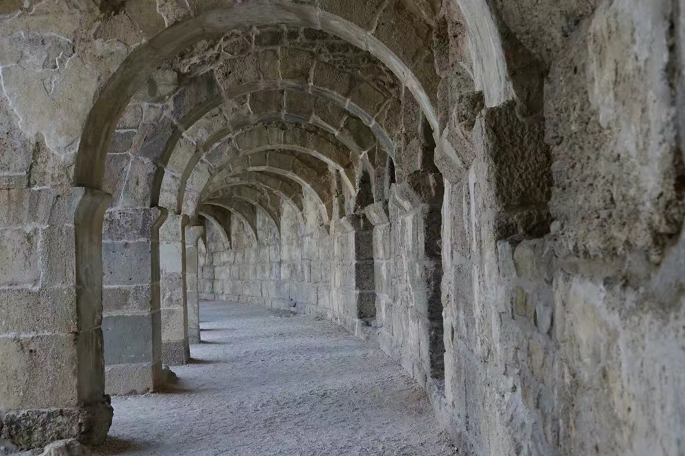 觀眾席頂端有59個(gè)拱形門相貫通的長廊,將整個(gè)劇場相連為一體。李仁奇 攝