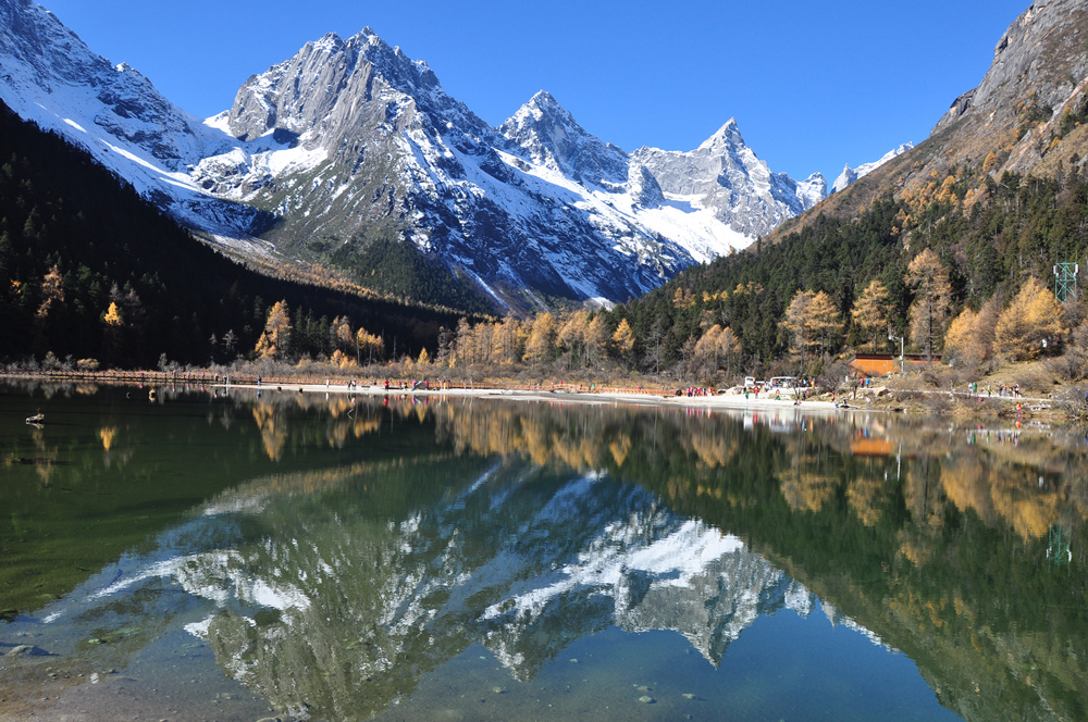 四姑娘山俏麗的身影倒映在天際湖內(nèi),此等美景入詩入畫。李仁奇 攝