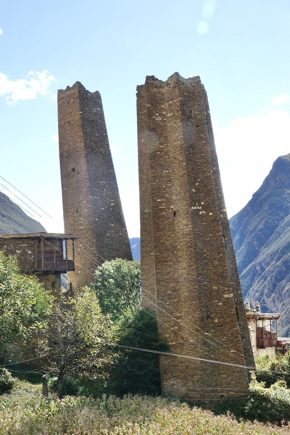 古碉修建的選址因地制宜,既要顧及防洪避災(zāi),還要考慮易守難攻,多建造在視野開闊、向陽避風的山坡上。李仁奇 攝