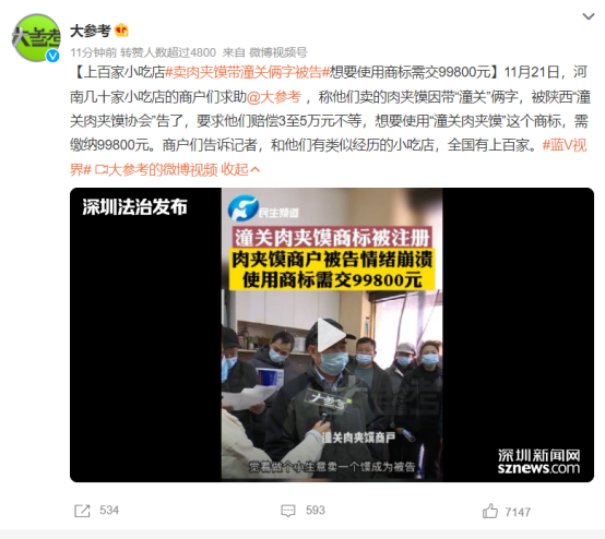 (相關(guān)報(bào)道:讓眾多店家崩潰的潼關(guān)肉夾饃商標(biāo)許可費(fèi)國(guó)家知識(shí)產(chǎn)權(quán)局回應(yīng)了
