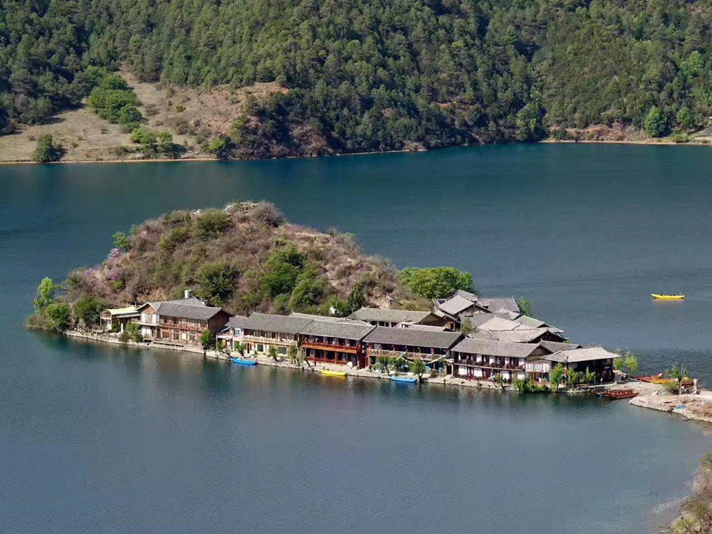 里格島是瀘沽湖內(nèi)一個美麗的半島,海島三面環(huán)水,左右青山環(huán)抱,傍立格姆女神山。李仁奇 攝