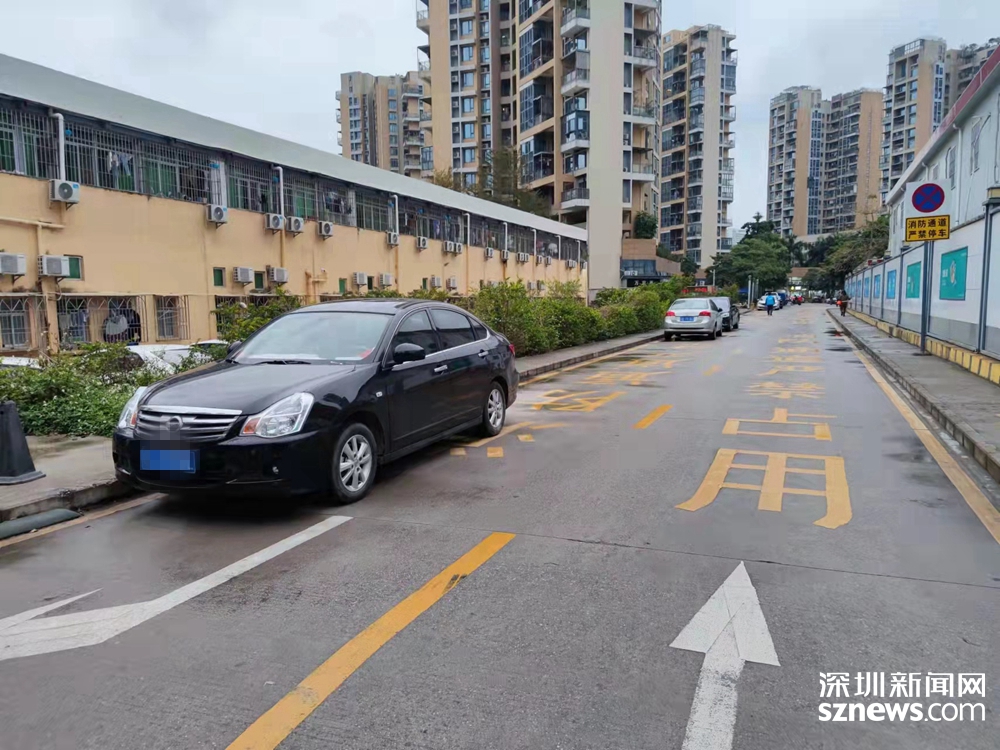 汽車停在此路段,這條路上赫然印著:消防通道,嚴禁占用。