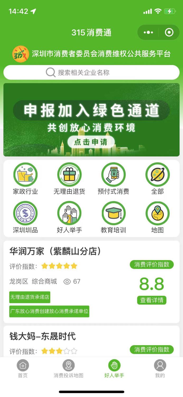 深圳消委會“315消費通”小程序“好人舉手”-“無理由退貨”欄目