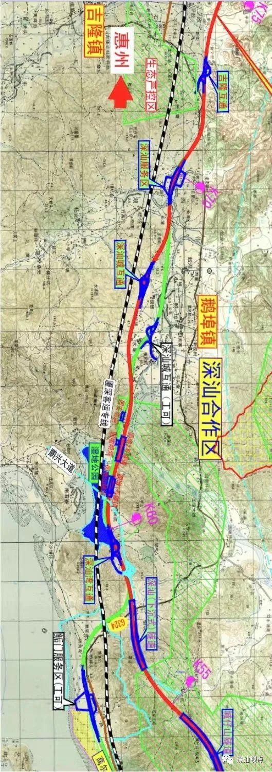 ▲深汕西改擴建深汕合作區(qū)段線路平面新圖