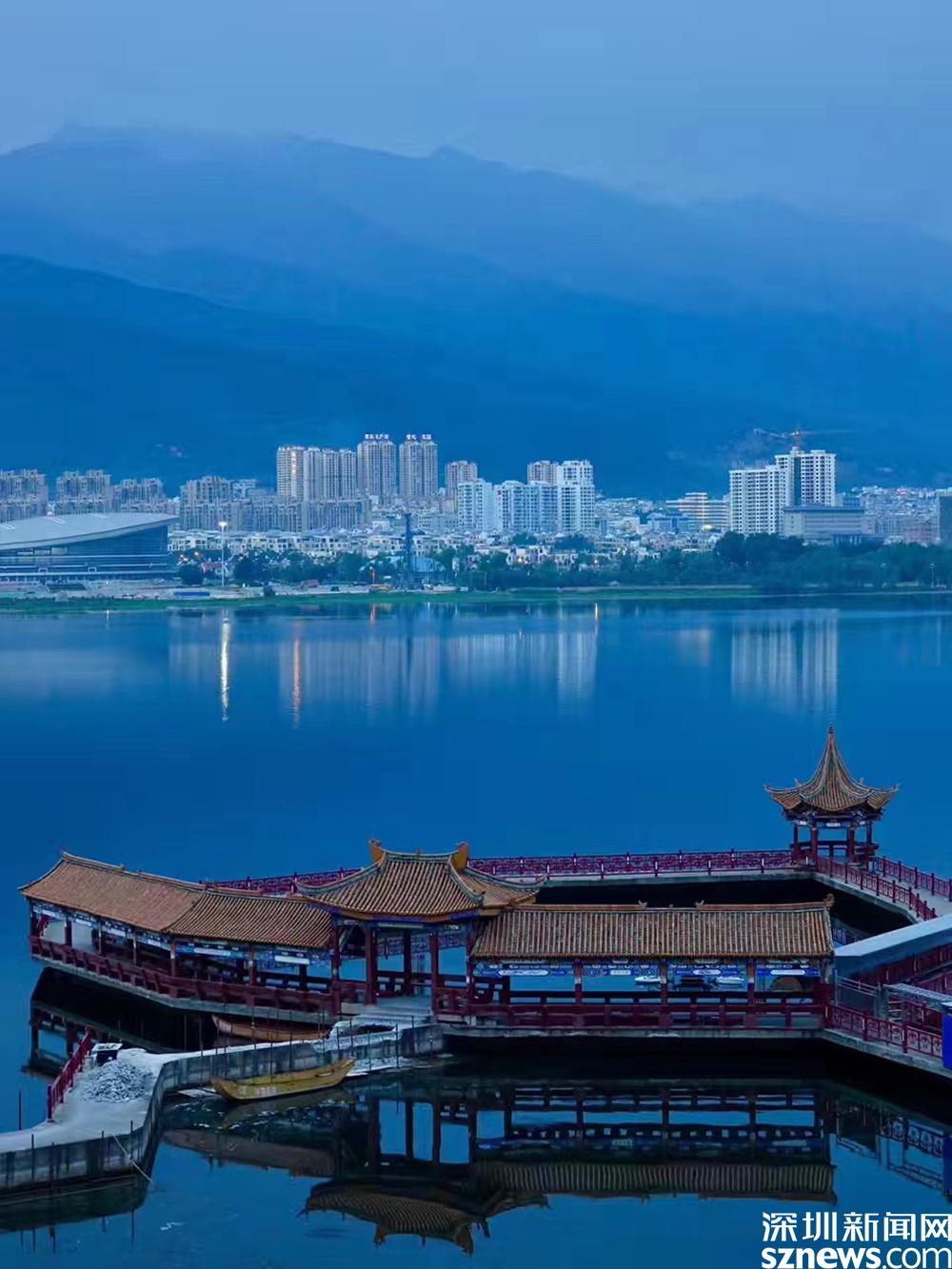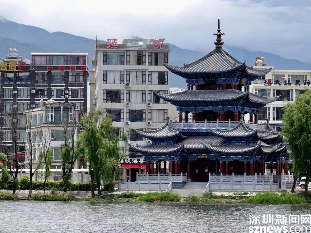 海心亭長(zhǎng)廊一直延伸到洱海中,感覺(jué)自己與洱海的距離近了。李仁奇 攝