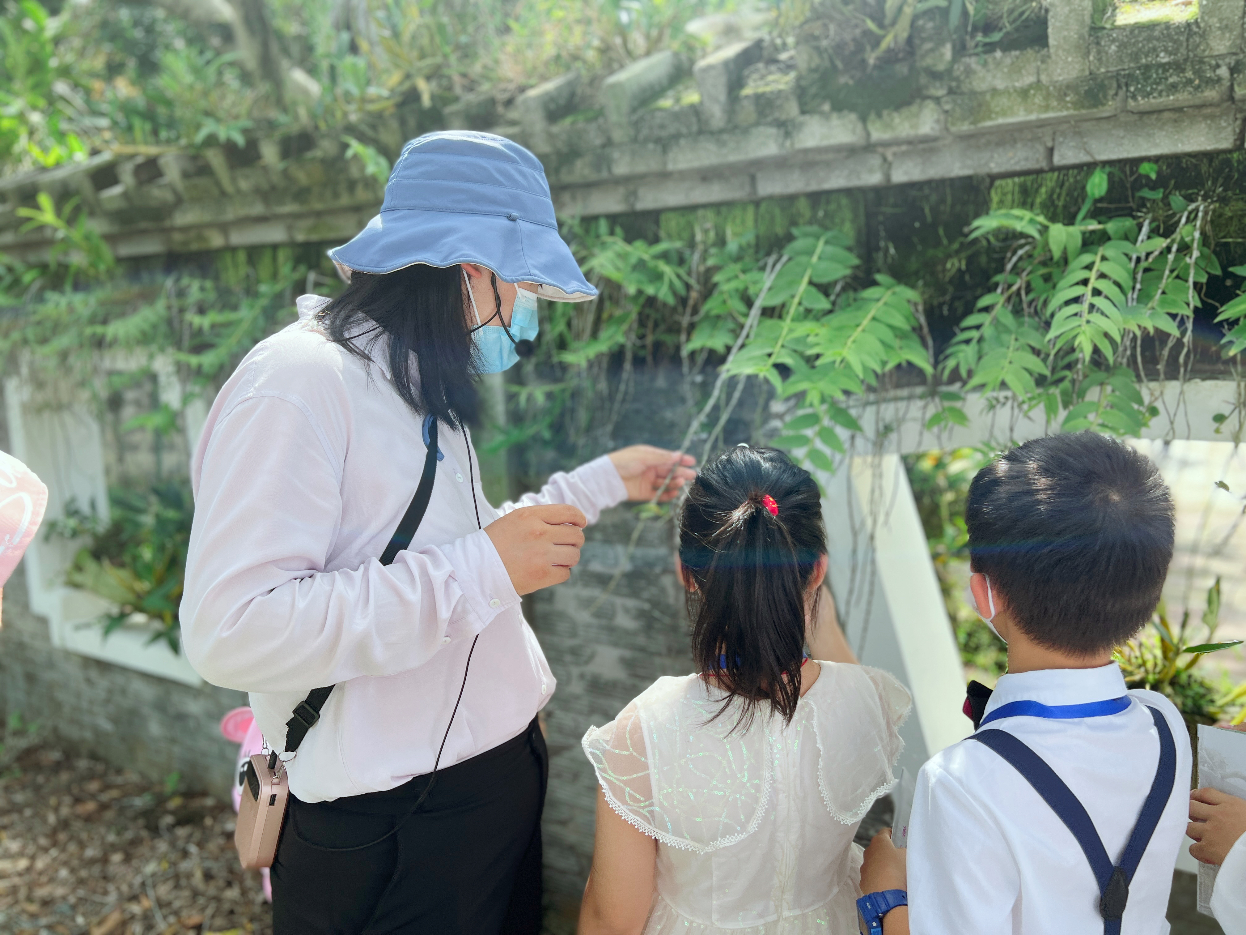 潘云云為文友們講解蘭科中心內的植物