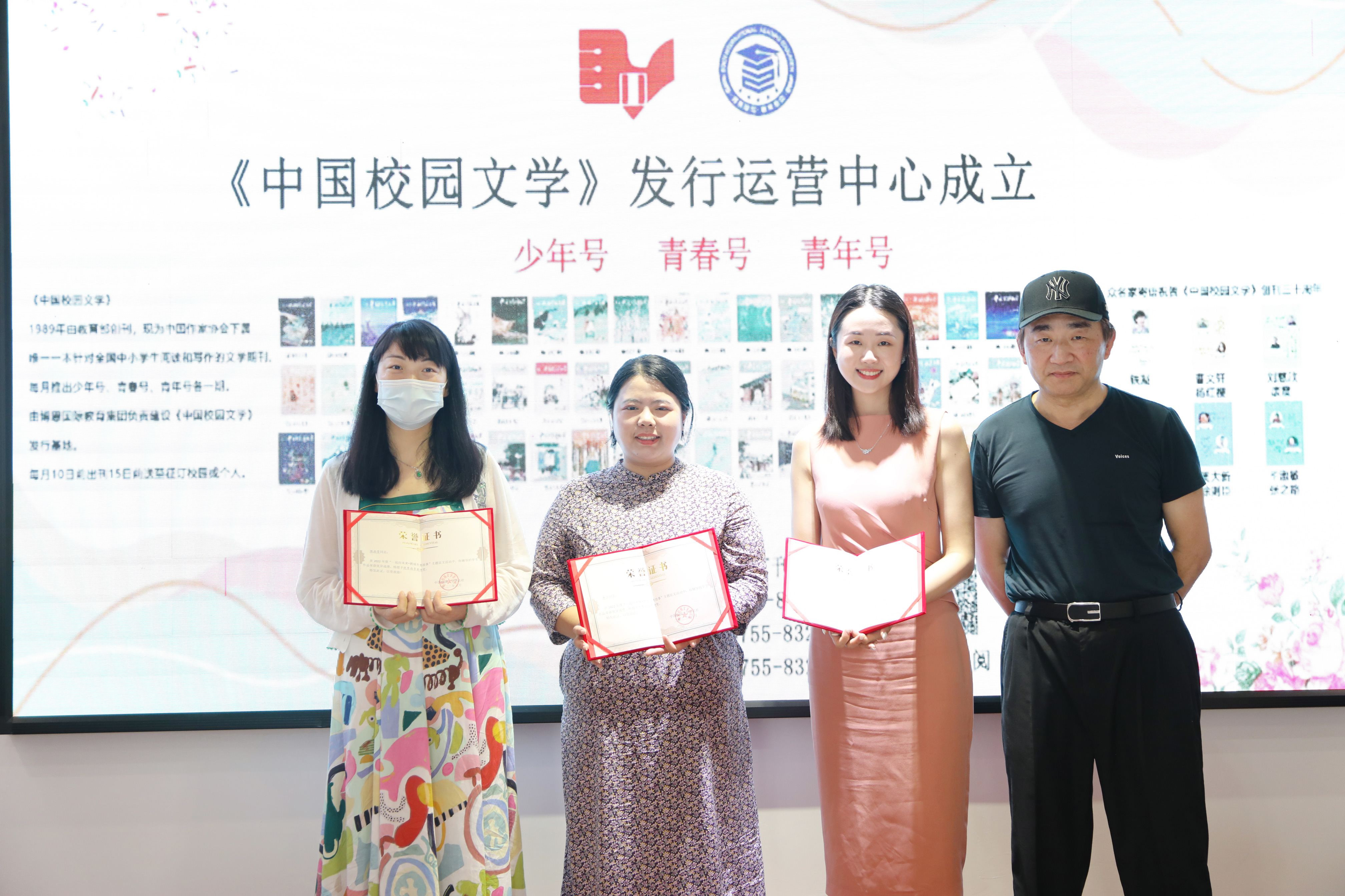 全國首期中小學(xué)樂隊指揮教師培訓(xùn)班發(fā)起者葉維佳為獲獎教師代表頒獎并合影