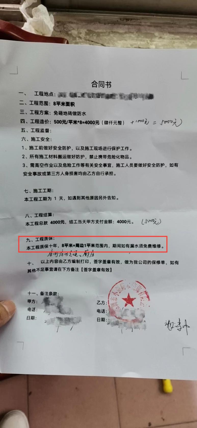 本人于2022年3月29日與該商家簽訂施工合同,支付4000元做防水工程并于當天施工,到了雨季發(fā)現(xiàn)施工處依然漏水,聯(lián)系商家上門維修了1次,但之后發(fā)現(xiàn)施工處仍然漏水,多次聯(lián)系商家無回復。合同中約定工程質保10年,現(xiàn)要求商家按照合同約定免費提供維修服務。