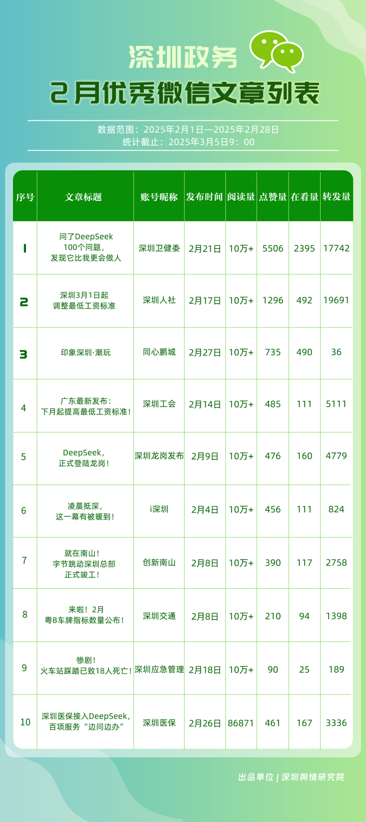 四、2月深圳優(yōu)秀政務(wù)新媒體賬號
