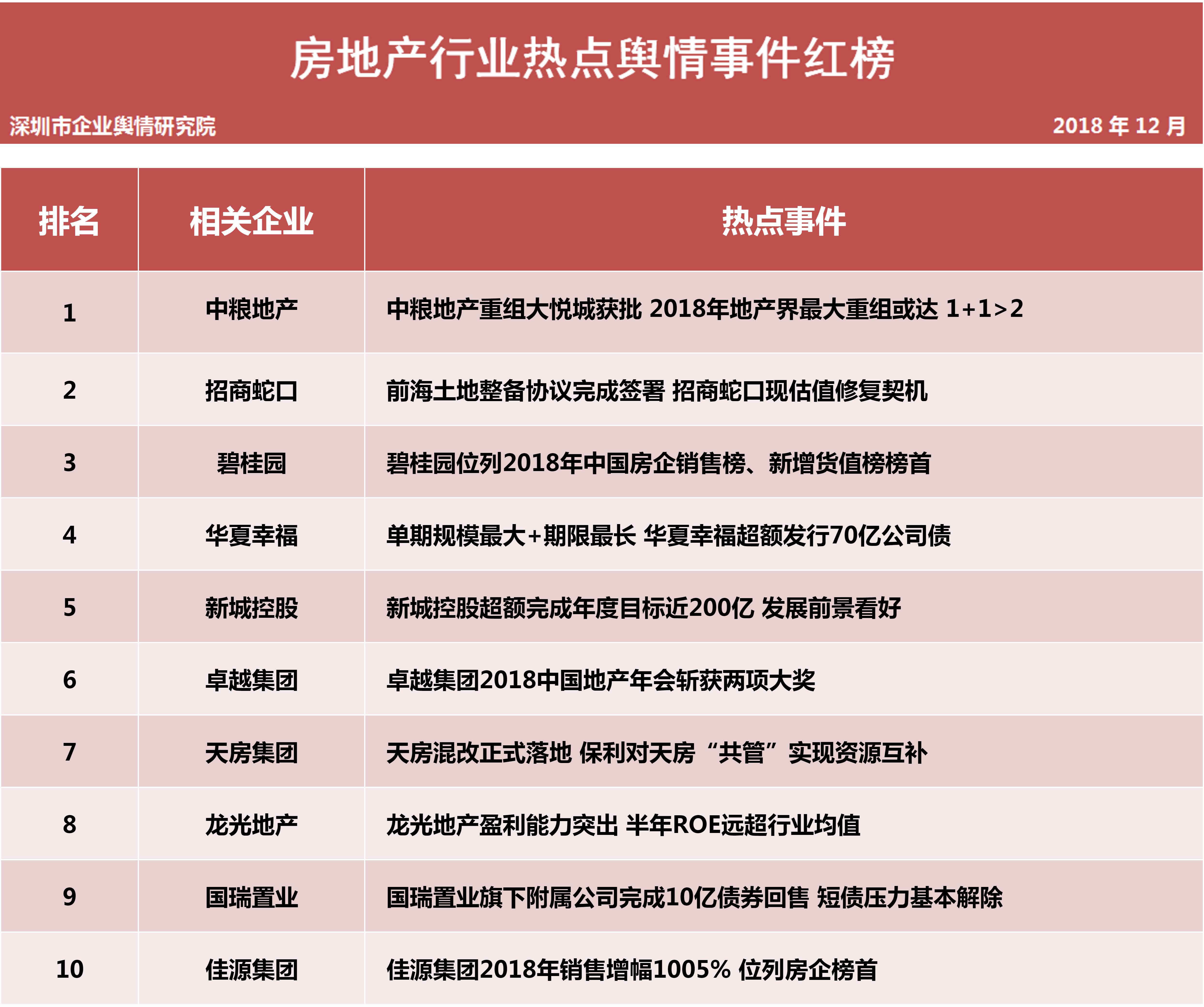 1月7日,深圳企業(yè)輿情研究院發(fā)布第十一批企業(yè)輿情榜單。本次榜單重點(diǎn)聚焦房地產(chǎn)及醫(yī)藥保健兩個行業(yè)。
