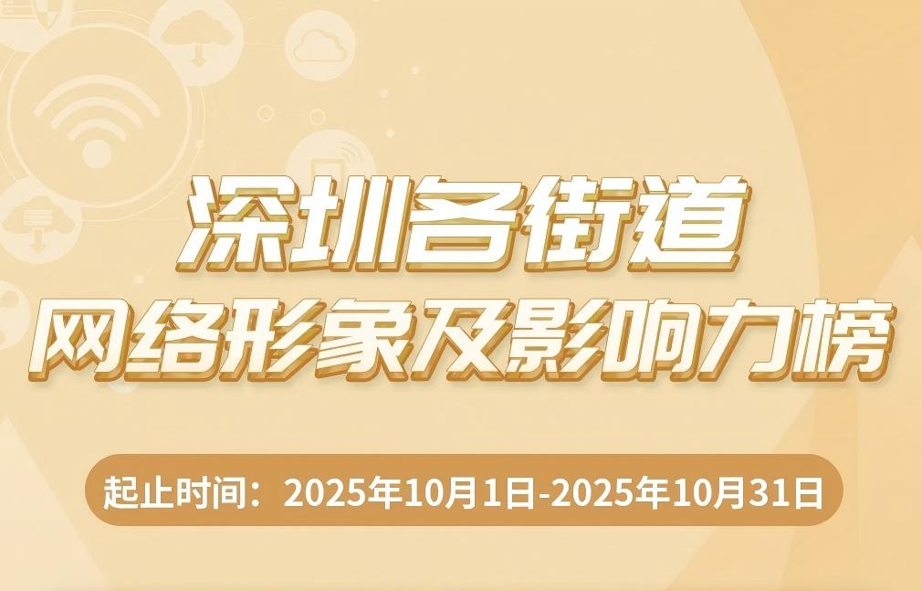 10月,各街道主動深耕社交平臺的傳播規(guī)律,優(yōu)化拓展基層治理,《深圳各街道網(wǎng)絡形象及影響力榜》(10月榜單)編制完成。