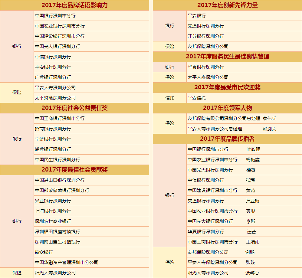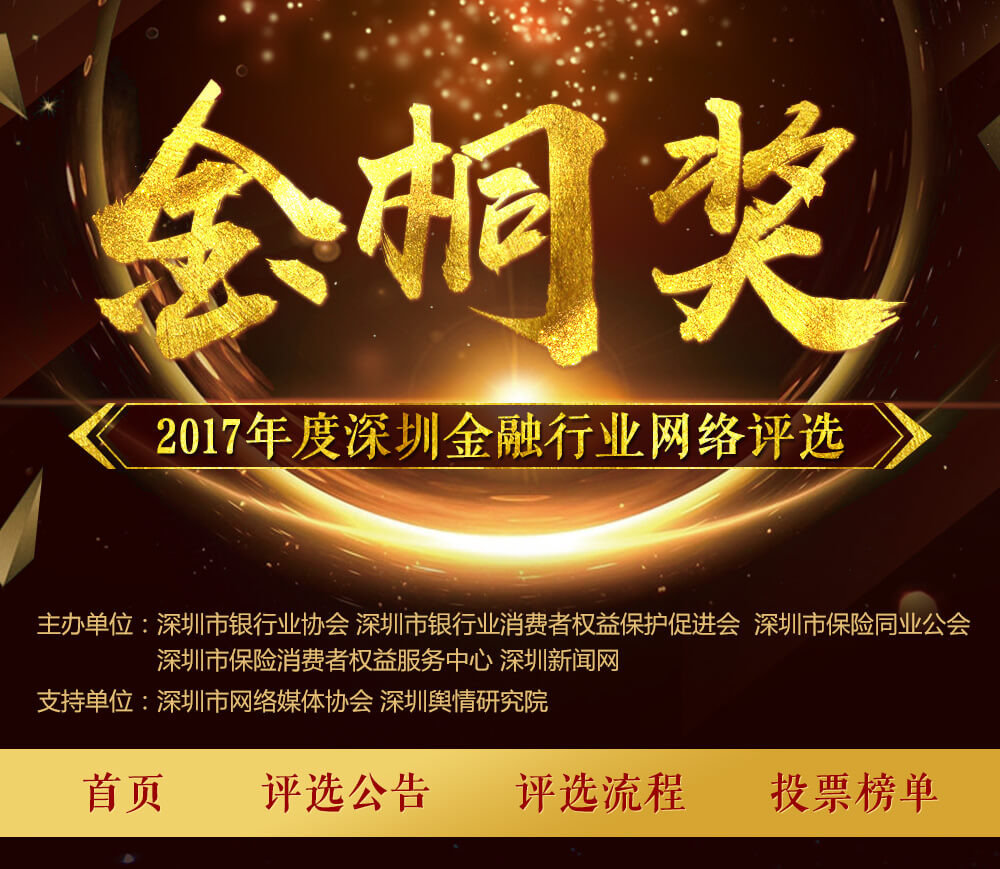 2017年,深圳金融實現(xiàn)快速發(fā)展。為了讓金融真正回歸服務(wù)實體經(jīng)濟(jì)的本源,真正脫虛向?qū)?,深圳新聞網(wǎng)將聯(lián)手行業(yè)權(quán)威協(xié)會、第三方機構(gòu)、媒體,以“新時代·新服務(wù)·新金融”為主題,以深圳金融機構(gòu)如何回歸本原、改革創(chuàng)新、服務(wù)實體經(jīng)濟(jì)為核心,從“品牌話語影響力”、“創(chuàng)新先鋒力量”、“輿情管理 服務(wù)民生”三個角度出發(fā),邀請眾多金融機構(gòu)共同發(fā)力,自覺加入金融回歸服務(wù)實體經(jīng)濟(jì)本源這一滾滾時代洪流中來。作為一個金融公民,我們也盡一份該盡的社會責(zé)任,為市民遴選最能代表深圳本地實力及形象的金融機構(gòu),同時頒發(fā)重磅大獎:“金桐獎——年度品牌話語影響力”、“金桐獎——年度創(chuàng)新先鋒力量”、“金桐獎——服務(wù)民生最佳輿情管理”。
