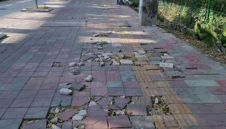 寶源路人行道有多處破損,回應(yīng):本周內(nèi)進場修復(fù)