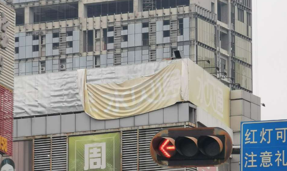 羅湖水貝工業(yè)區(qū)十五棟頂樓戶外廣告快脫落了,街道辦回應(yīng):廣告已撤下
