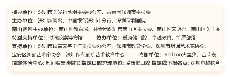 讓閱讀成為動(dòng)人的風(fēng)景,讓故事的魅力感動(dòng)深圳。為助力建設(shè)良好的青少年閱讀環(huán)境,激發(fā)學(xué)生閱讀興趣,倡導(dǎo)親子閱讀,共建和諧家庭關(guān)系。2020年,第二十一屆深圳讀書月主題活動(dòng)“誰是故事大王·第四季”在共青團(tuán)深圳市委員會、深圳市關(guān)愛行動(dòng)組委會辦公室的指導(dǎo)下再出發(fā)。更長的活動(dòng)周期,更豐富的參與形式,更專業(yè)的賽制,“誰是故事大王·第四季”等你來解鎖與挑戰(zhàn)!