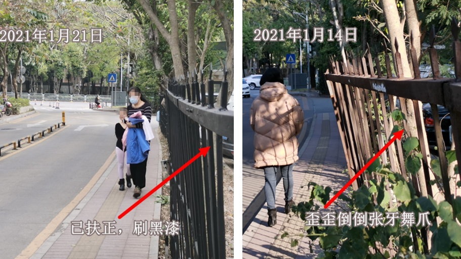 此前因找不到代建單位而無法移交主管部門管養(yǎng)的竹香一路,僅僅過了一周的時(shí)間,歪歪倒倒的圍欄扶正了,人行道也即將拓寬。